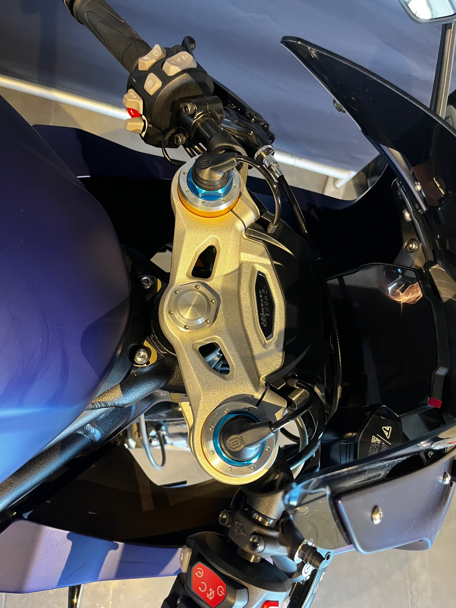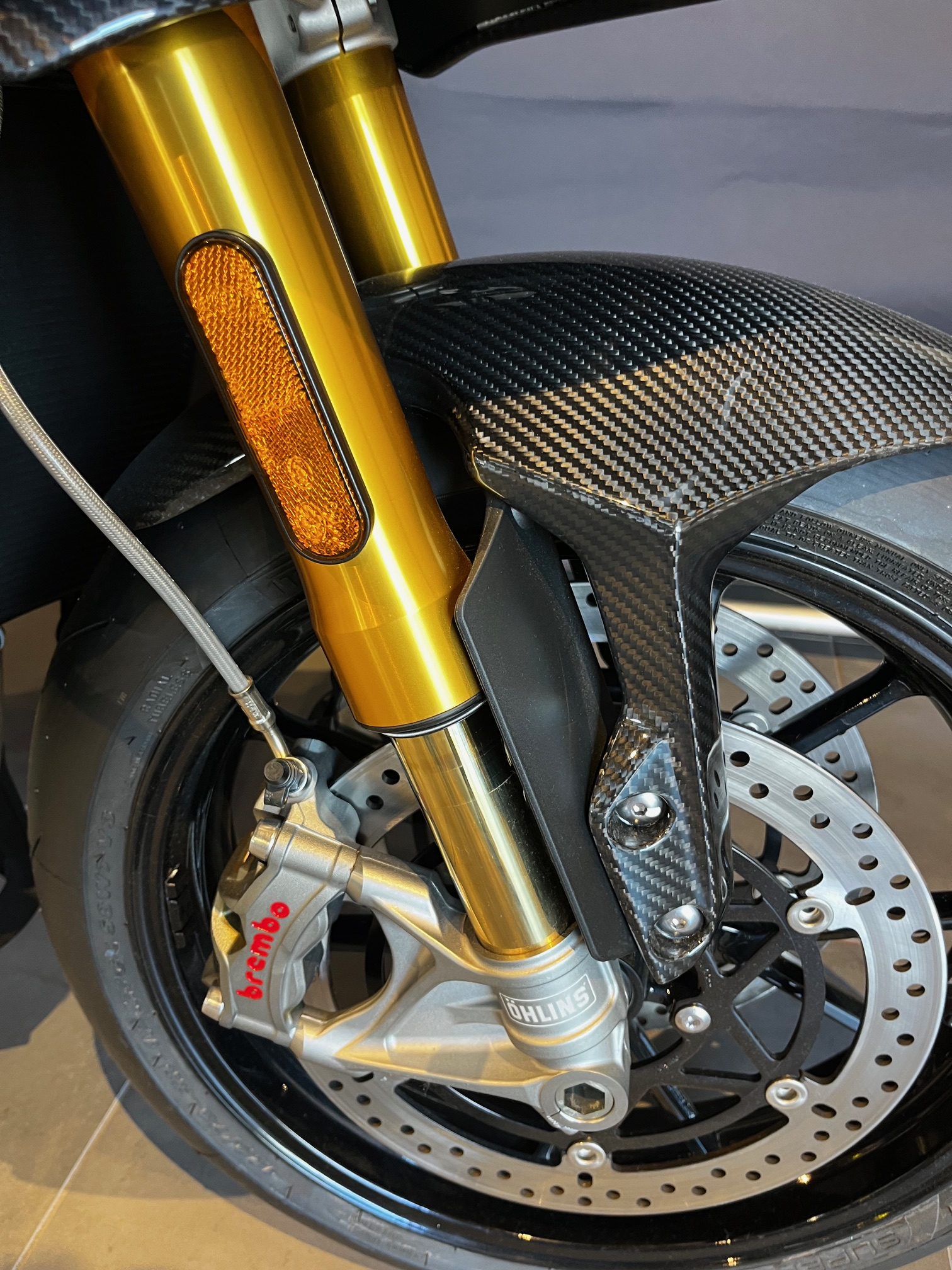 Equipements optionnels inclus : Amortisseur de direction, Amortisseurs Ohlins, Bulle fumée, Bulle sport, Capot de selle, Clignotants, Clignotants Led+ , Échappement homologué, Sabot moteur, Silencieux titane, Support de plaque, Suspension pilotée, Tête de fourche