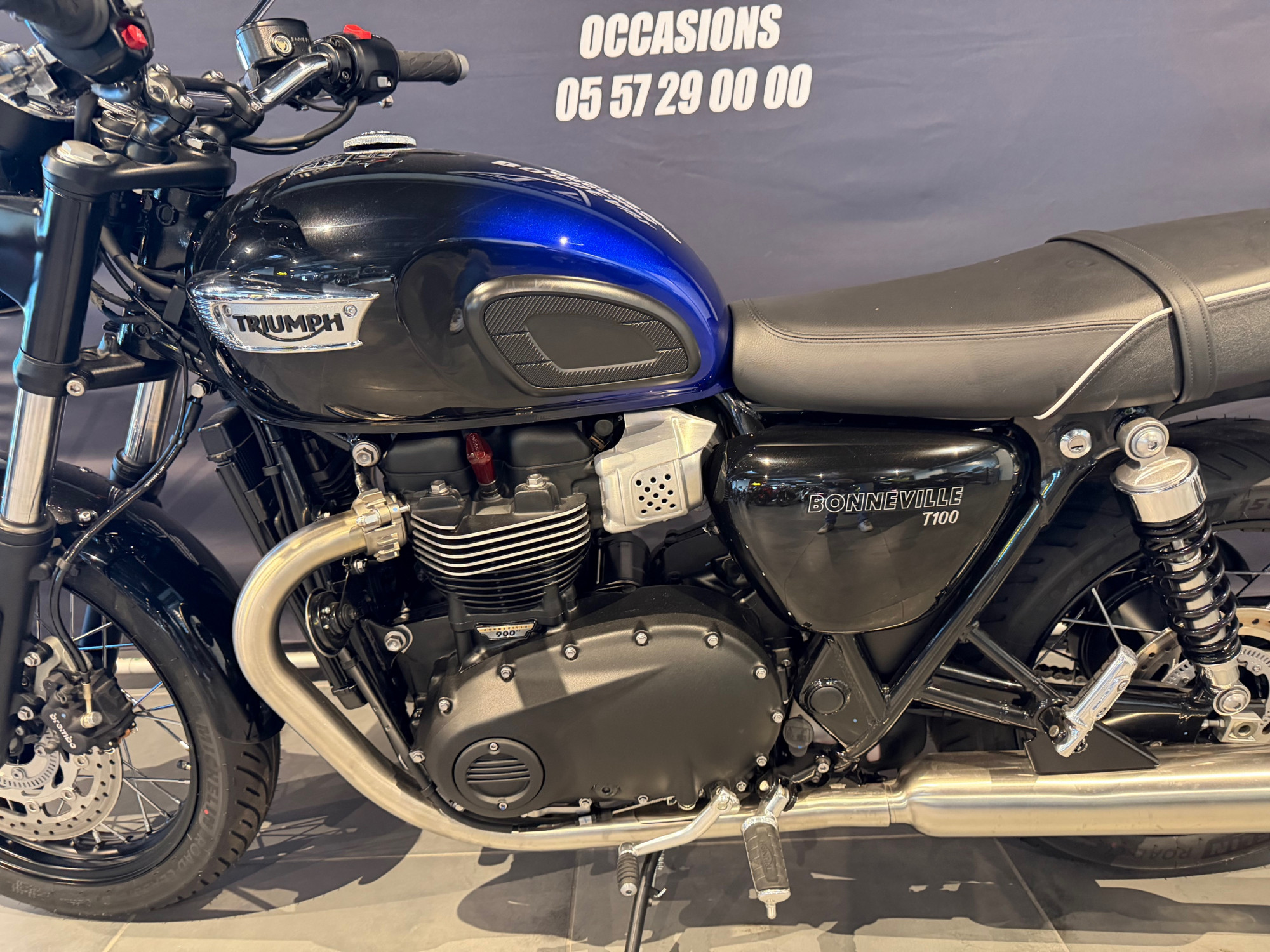 Cette superbe Triumph modèle Bonneville T100 mise en circulation du 31/12/2024 avec 160 kms .