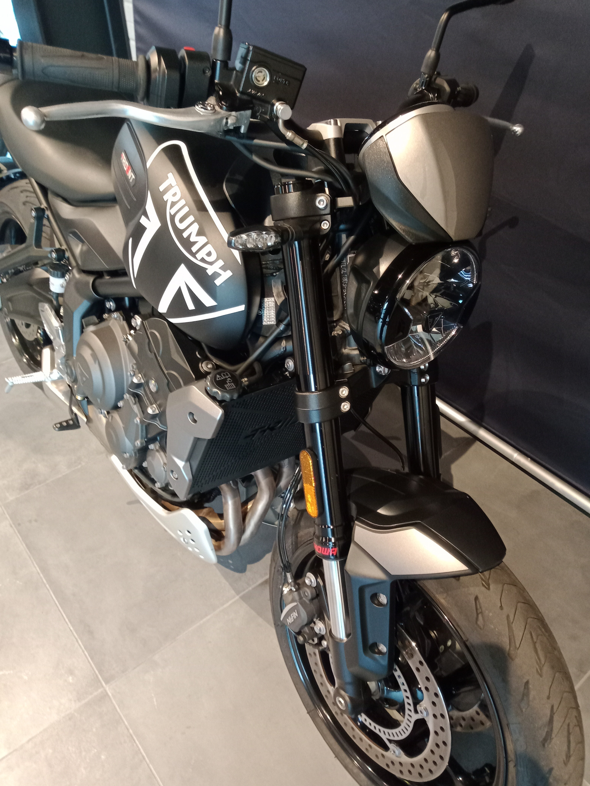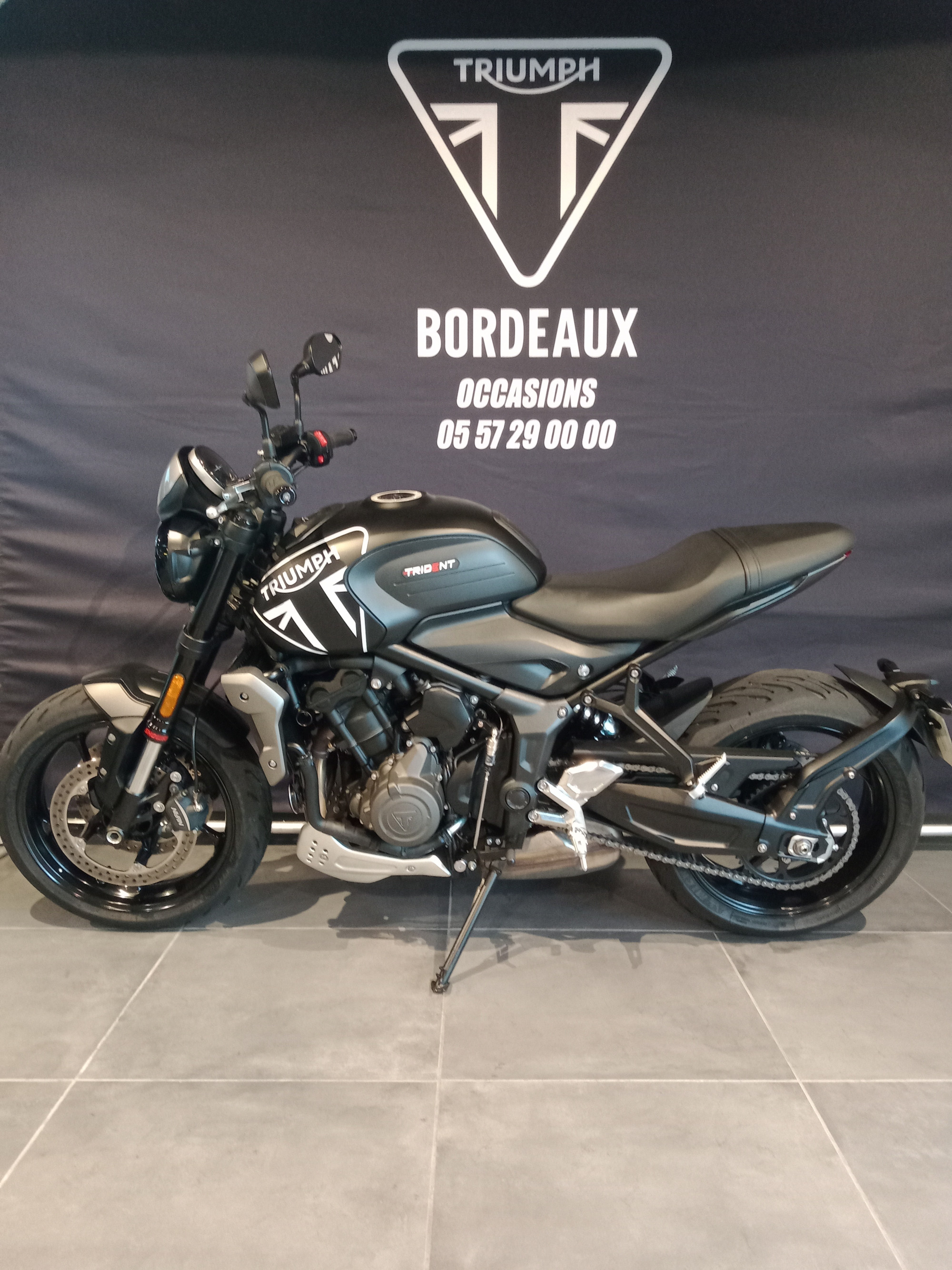 ce superbe Trident 660, bridable A2 et bien équipé. Moto d’occasion disponible en magasin, tarif de base 7200 € carte grise et frais de mise à la route en sus.